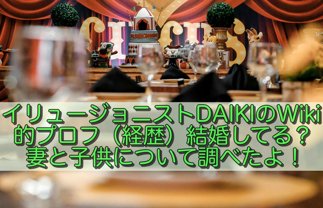 - イリュージョニストDAIKIは結婚してる?妻や子供はいるの?:公式の資料ではDAIKIさんが結婚しているかどうかの情報は得られませんでした。引き続きWatchしていきたいと思います!
